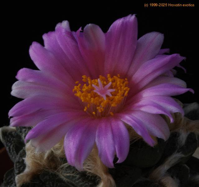 Izredno lep ariokarpus, ki spada v vsako bogatejšo zbirko. V naravi je telo rastline zaradi zaščite pogreznjeno v zemljo, listi so temno zelene sivkaste barve, nagrbančeni in kakor posuti z bradavicami, podobnimi kamnom in kamenčkom okoli njega. Tako neopazno, zelo počasi rastejo iz leta v leto, dokler ne zacvetejo v lepi škrlatno roza barvi. Močne repaste korenine, katere se z leti razvijejo, zahtevajo visoke lončke z mivkastim, peščenim substratom. Večje rastline so lahko brez bojazni šest do osem mesecev brez vode. Že v sredini septembra prenehamo z zalivanjem, začnemo šele aprila naslednje leto. Na ta način mi je uspelo rastline obdržati pri življenju dolgih petinštirideset let. Cvetove, ta vrsta nastavi šele po 12 letu starosti, nato pa vsako leto koncem septembra ali v začetku oktobra. Za uspešno nastavitev popkov mora imeti visoko temperaturo in močno svetlobo, kar dosežemo z namestitvijo rastlin tik pod okni. Poleti je lahko tudi zunaj, zaščiten pred padavinami, do pozne jeseni, ko ga po cvetenju prenesemo v notranji prostor. Pri tempazimo, da mu direktno sonce ne ožge listov.