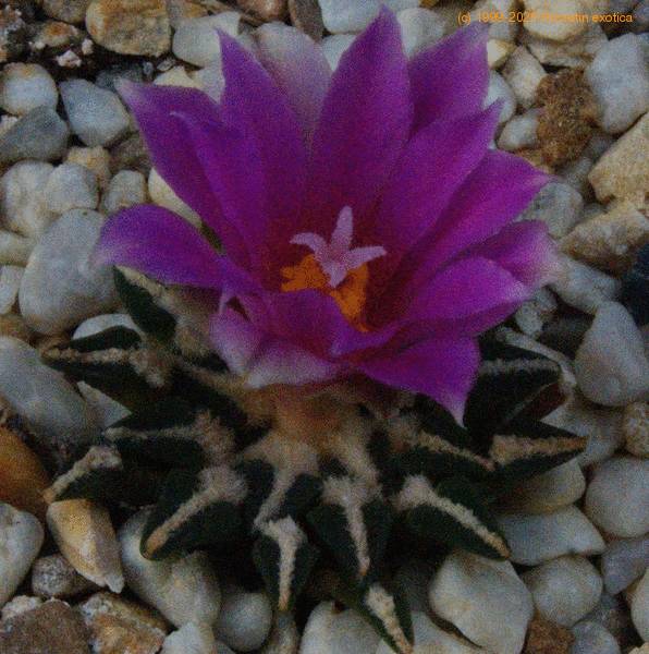 Tudi ta vrsta v domovini raste na apnenčastih gričevnatih tleh na višini 1000 -1300m mehiških pokrajin: Zacatecas, San Luis Potosi, Nuevo Leon, Tamaulipas. Prizemne rozete zrastejo 7 do 9cm premera, ter so barvno popolnoma prilagojene okolju tako, da so opazne šele v obdobju cvetenja. V sušnem obdobju (pri nas zimskem obdobju) močan koreninski sistem rastlino potegne v tla, vetrovi jo pokrijejo s peskom in prahom ter tako zavarujejo pred sončno pripeko. Ker je v njihovi domovini poleti deževno obdobje, tudi v naših razmerah potrebujejo več vode. Zalivamo enkrat na 10 dni v sončnem vremenu in enkrat na 15 dni v deževnem času. Če so čez poletje zunaj, morajo biti pod streho ali napuščem, tako da lahko kontroliramo količino padavin. Substrat mora biti propusten, ker koreninski sistem ne prenese stoječe vode, zlasti ne, ko zunanje temperature padejo pod 15 stopinj C. Zaliti zgodaj spomladi ali v pozni jeseni, ob padcu temperature v nekaj dneh zgnijejo.