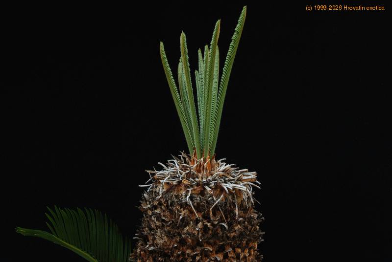 Vrsta je preživela že zdavnaj izumrle rastline, katere se najdejo samo še med fosili. Steblo rastline je v mladosti okrogle oblike, pozneje pa se podaljša v stupčasto obliko. Raste zelo počasi ter napravi do dva metra dolge temnozelene pernato razrasle liste ki tvorijo rozeto. Spodnji listi se sušijo ter jih je zaradi lepega videza rastline potrebno odrezati. V rastnem obdobju rastlina iz sredine rozete vsako leto požene nove liste. Čeprav razne literature navajajo razmnoževanje iz semen,smo to pri naših obiskih v številnih evropskih rastlinjakih le redko opazili. Uvažajo pa debelne gomolje različnih veličin, ki jih odrežejo od matičnega debla ter posadijo v humusno-peščen substrat.Ob visoki zračni vlagi in temperaturi nad 30 st.C , gomolji v 2-3 mesecih poženejo različno število listov in rastlina je pripravljena za prodajo.(Cena se določa na osnovi števila listov in velikosti stebla).