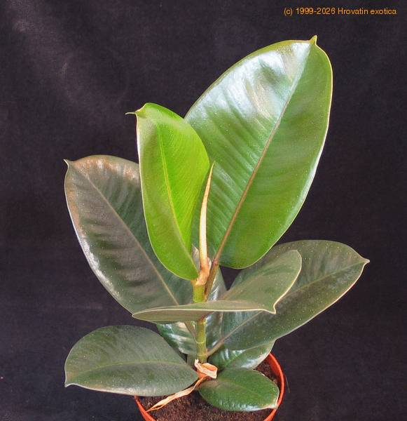 Je zelo priljubljena sobna rastlina. Ima velike mesnate, temno zelene liste. Če zarežemo v steblo priteče iz rane bel mleček. Včasih so iz te rastline pridobivali kavčuk. V temenem prostoru se ne razrašča. V naravnem okolju se najprej dviga proti svetlobi kot ovijalka na drugih drevesih, šele ko preraste drevo naredi krošnjo. Ko gostitelj odmre rastlina raste samostojno. Če želimo imeti rastlino razvejano, moramo spomladi odrezati vrh. Odrezanemu vrhu mleček speremo in ga podtaknemo.