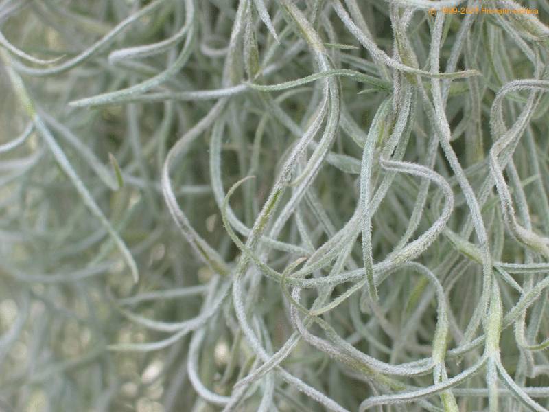 Vrsta je zastopana v dveh oblikah in barvah. Zelene tilancije usneoides množično rastejo v tropskih toplejših nižinskih predelih, kjer je zadosti zračne vlage, sive in srebrne usneoides pa v subtropskih suhih in hladnejših višinskih habitatih vse do 3000m nadmorske višine. Ponavadi se obešajo na veje dreves, predvsem hrastov in cipres. V obdobju močnejših padavin se velike gmote teh rastlin tako napijejo vode, da se pod njihovo težo lomijo veje, podirajo drevesa ter trgajo telefonske žice. Po padcu na tla v kratkem času segnijejo in propadejo. Tenka stebelca so prekrita z drobnimi listki, polnimi trihomov, s pomočjo katerih iz zraka črpajo vlago in prašne delce za svoje preživetje. V več kot desetih letih mi je iz 30 cm šopov uspelo vzgojiti 3m dolge rastline vseh treh vrst: srebrne, sive in zelene kot je razvidno na zgornji sliki. Zeleno vrsto sem prezimoval v stanovanjskih prostorih ter jo pršil dva krat tedensko. Po končanem zimskem obdobju je dobila prostor v stekleniku, kjer sem jo v vegetacijskem obdobju toplih poletnih mesecev pršil vsak dan z vodo, enkrat na 14 dni pa sem jo za pol ure namočil v sod z deževnico. Siva in srebrna sta v stekleniku preživeli pet zimskih mesecev brez vode med 10 do 12 stopinj C. Spomladi sem ju prenesel v zunanji prostor ter obesil na polsenčno mesto v zavetju trte. Škropil sem 3 do 4 krat tedensko, 1 krat mesečno pa sem ju potopil za pol ure v deževnico. Bolezni: Od škodljivcev sem samo enkrat opazil volnatega kaparja, katerega sem ročno odstranil s pomočjo čopiča namočenega v raztopino metilnega alkohola. Na eni od zgornjih slik je v sredini opazen kupček kaparja. (Pseudococcidae)