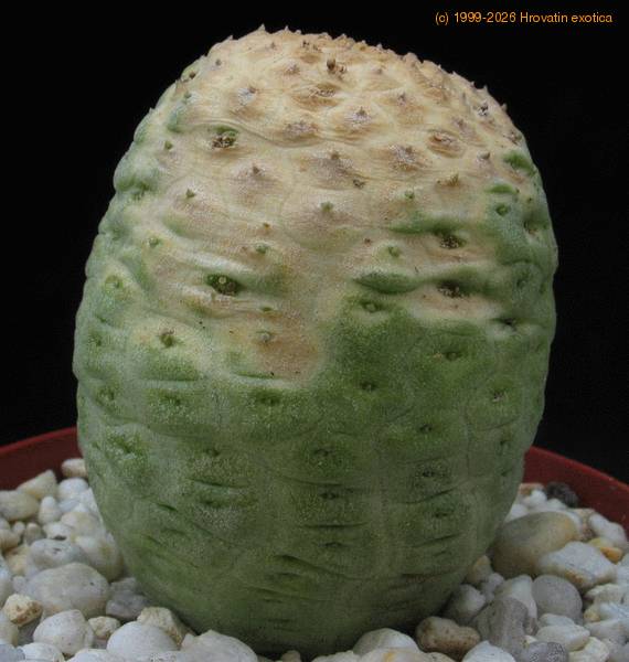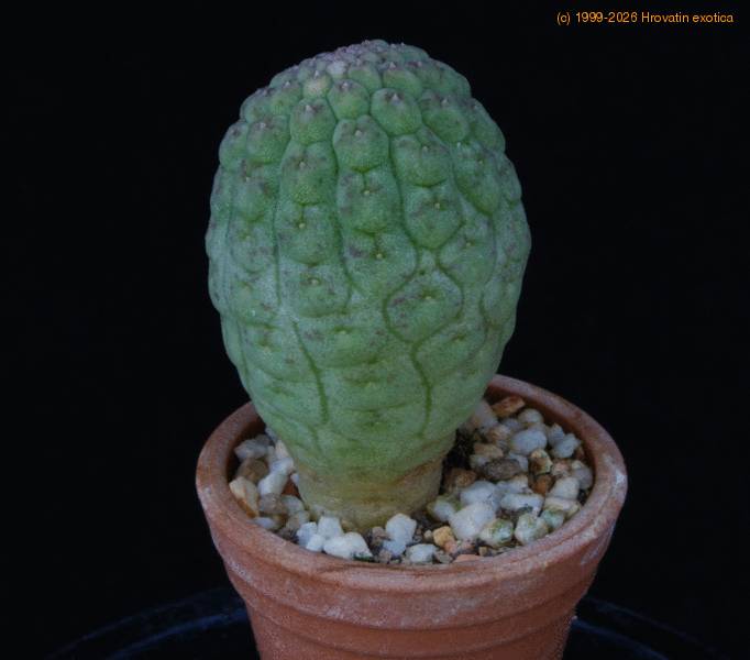 Raritetna vrsta južnoafriške sočnice okroglega, pozneje podolgovatega telesa, ki je podoben kaktusu brez bodic. Večinoma raste posamezno, včasih pa se formira grupa z več rastlinami. Meso je sočno, sluzasto, brezbarvno in grenkega ukusa. Ker je vegetacijsko obdobje v naših pogojih 6 mesecev, raste počasi, približno 1 cm na leto. Idealno je, da prezimi v hladnem prostoru okrog 14 stopinj C. brez zalivanja. Ko v sredini aprila prvič zmerno zalijemo, dvignemo tudi nočno temperaturo. Brez tega preventivnega ukrepa je verjetnost gnitja korenin. V toplih prostorih mora rastlina imeti prostor na okenski polici obrnjeni proti jugu. Mlajšo rastlino, staro od 3 do 6 let, pozimi 2 krat malo zalijemo,najbolje v podstavek, da se popolnoma ne izsuši, starejšo ni potrebno zalivati. Ne glede na ogrevan prostor brez problemov zdrži 5-6 mesecev brez vode. Normalno začnemo zalivati v sredini maja, ko so nočne temperature večje od 15 stopinj C. Glede na mešanico zemlje, zalivamo več ali manj šele takrat, ko se substrat skoraj posuši. V ugodni mešanici se koreninski sistem močno razvije, čez zimsko obdobje pa se posuši v tanjše laske. Substrat mora biti čim bolj porozen po možnosti brez šote, komposta ali humusa. Sprejemljiva je presejana bukova, hrastova, oziroma listovka mešanega gozda z nizkim PH-jem ter dodatkom kremenčevega peska, mivke, perlita. Nikoli nisem imel probleme z njihovo rastjo, dokler nisem pred 3 leti rastline presadil v priporočeno »najboljšo« mešanico za trihokaulone. V obdobju 2 let mi je segnilo več kot polovica semenskih rastlin starih od 10 doi 15 let, prav tako so gnili sejančki in mlajše rastline. 2014 leta sem zopet večino presadil v svojo mešanico in upam, da naslednje leto ne bodo več podvrženi gnitju.